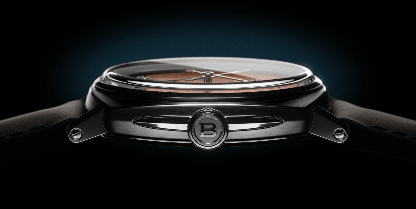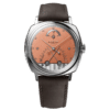 Dit is Breva, het jonge horlogemerk dat zich in korte tijd in de schijnwerpers heeft weten te plaatsen bij verzamelaars dankzij het unieke wijzerplaatontwerp. Deze Segreto di Lario-uitvoering is vervaardigd uit lichtgewicht en comfortabel titanium en beschikt over een verticaal geborstelde, zalmkleurige wijzerplaat.