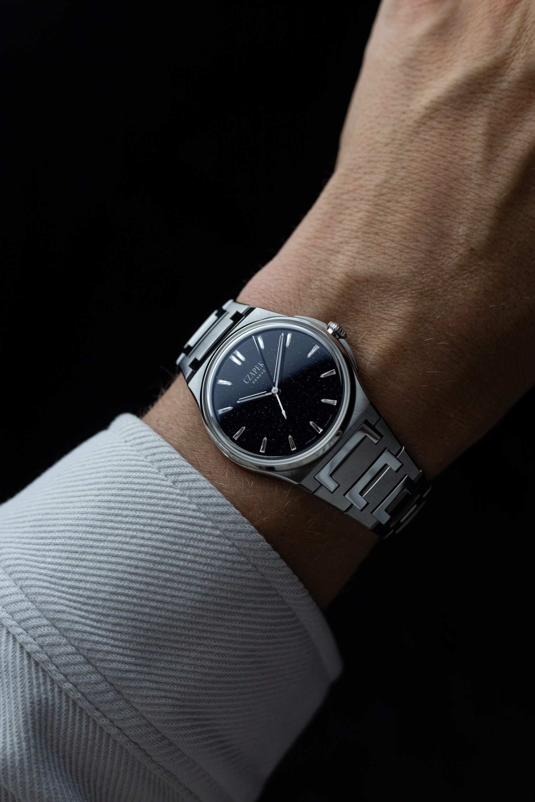 Het prachtige automatische SXH5.01 uurwerk is in-house ontworpen door de top van Zwitserse ambachtslieden en productiepartners. Het geeft nauwkeurig de uren, minuten, seconden en datum aan met een gangreserve van meer dan 60 uur, opgewekt door slechts een enkele veerton. Verwisselen van de stalen band naar een kalfsleren of rubberen band is zeer eenvoudig door het exclusieve “Czapek Easy Release”-mechanisme.