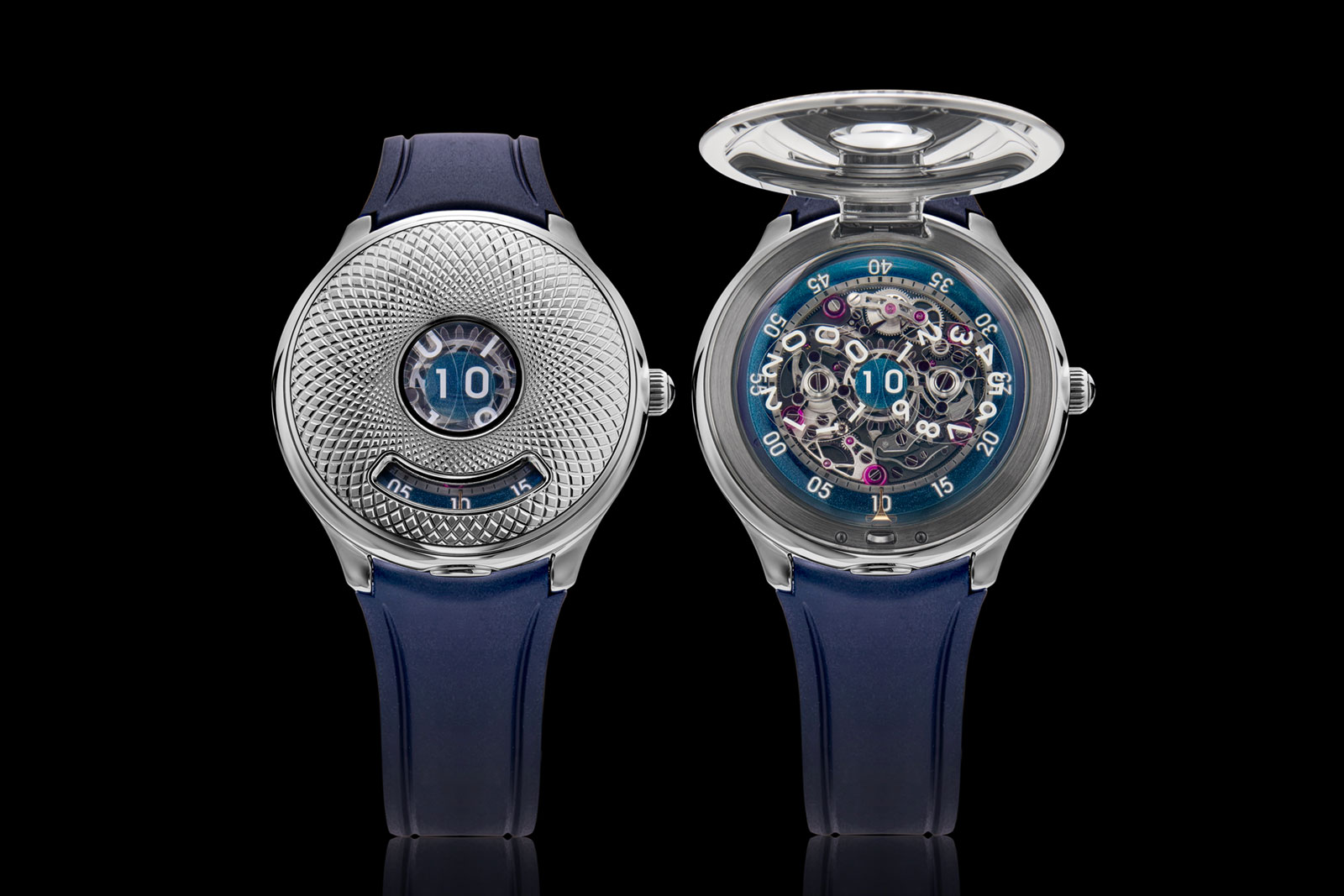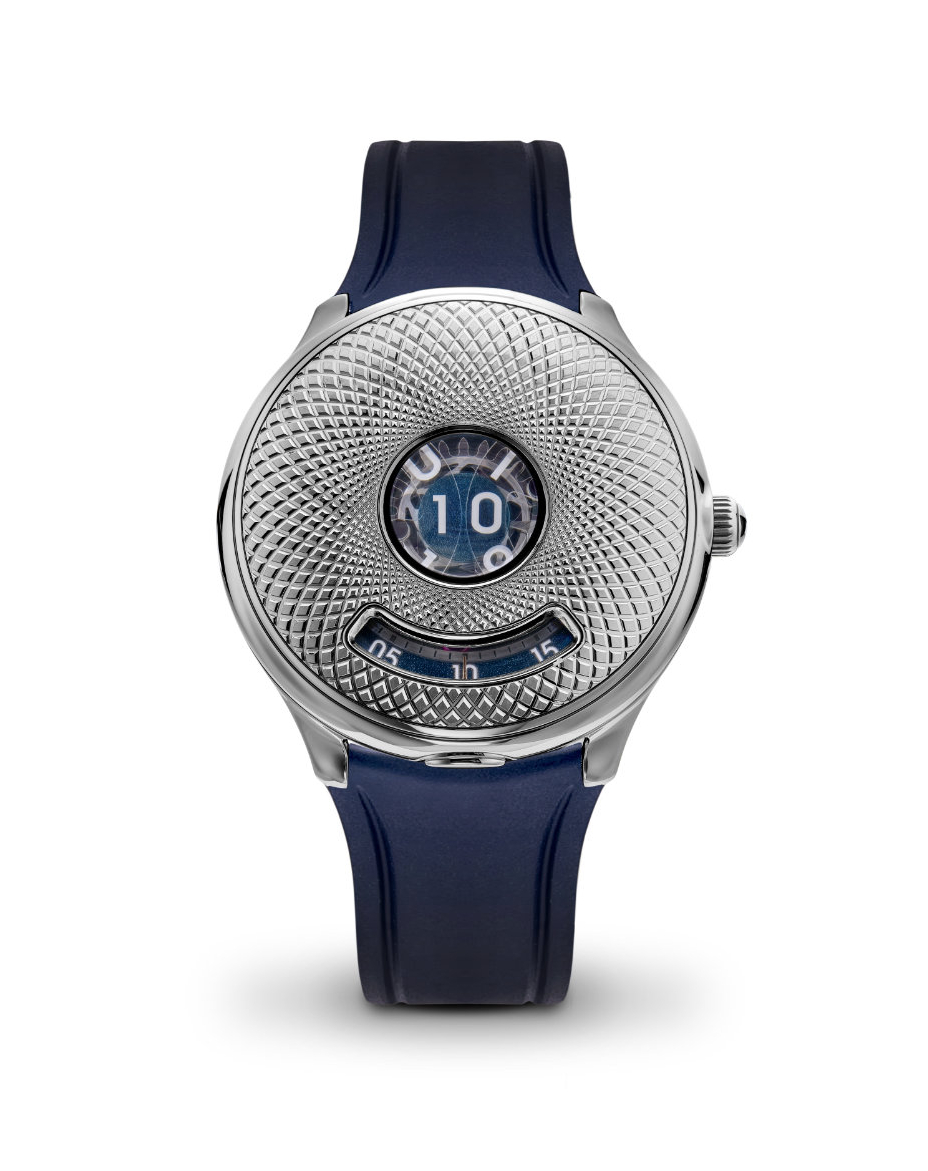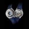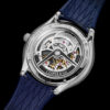 Deze Time Jumper is is uitgevoerd in een 40,5 millimeter stalen kast met gedetailleerde guilloché op de stalen kap die de wijzerplaat bedekt, deze kap kan omhoog waardoor het geweldige complexe uurwerk te zien is achter een saffierglazen wijzerplaat.